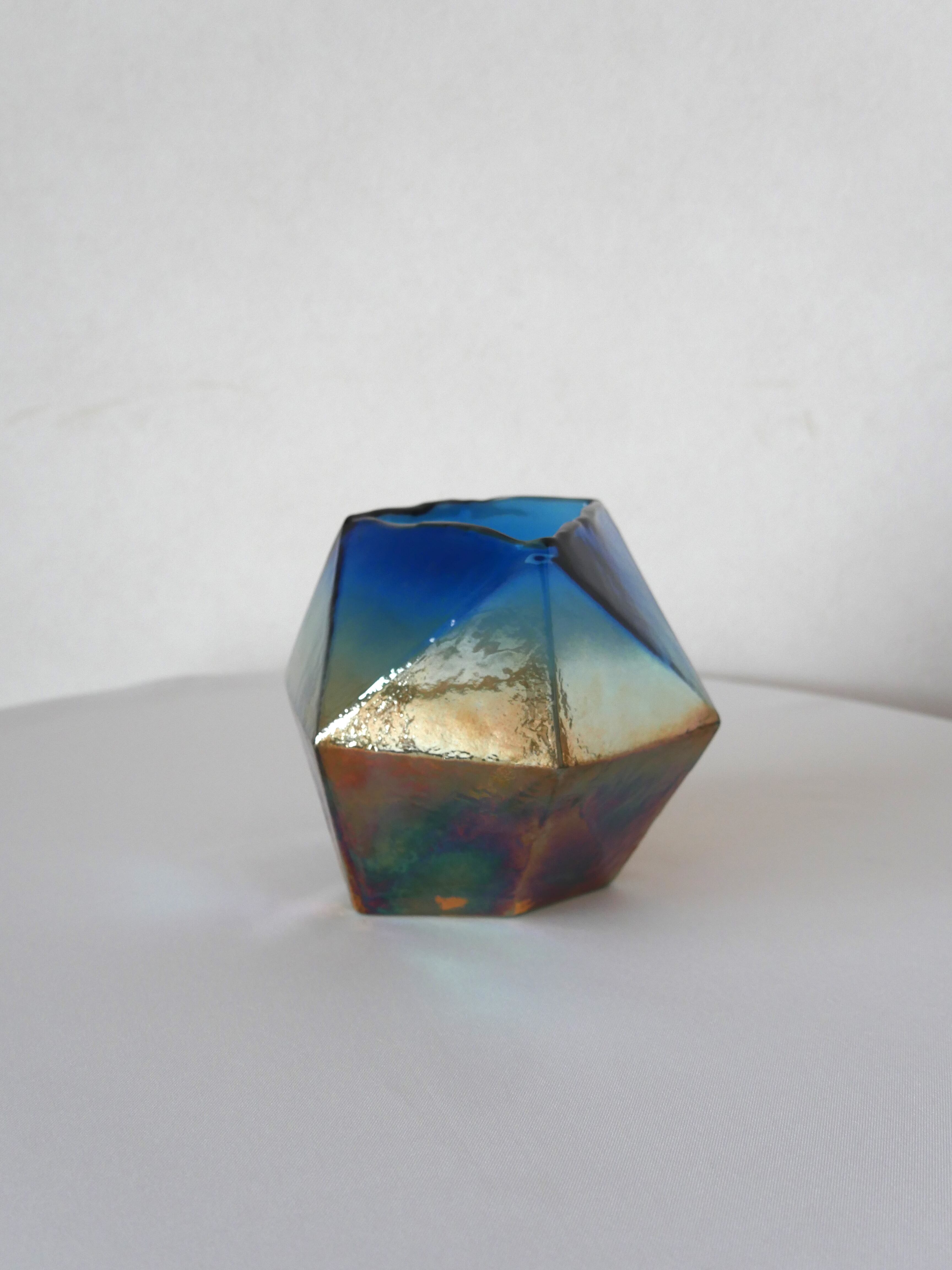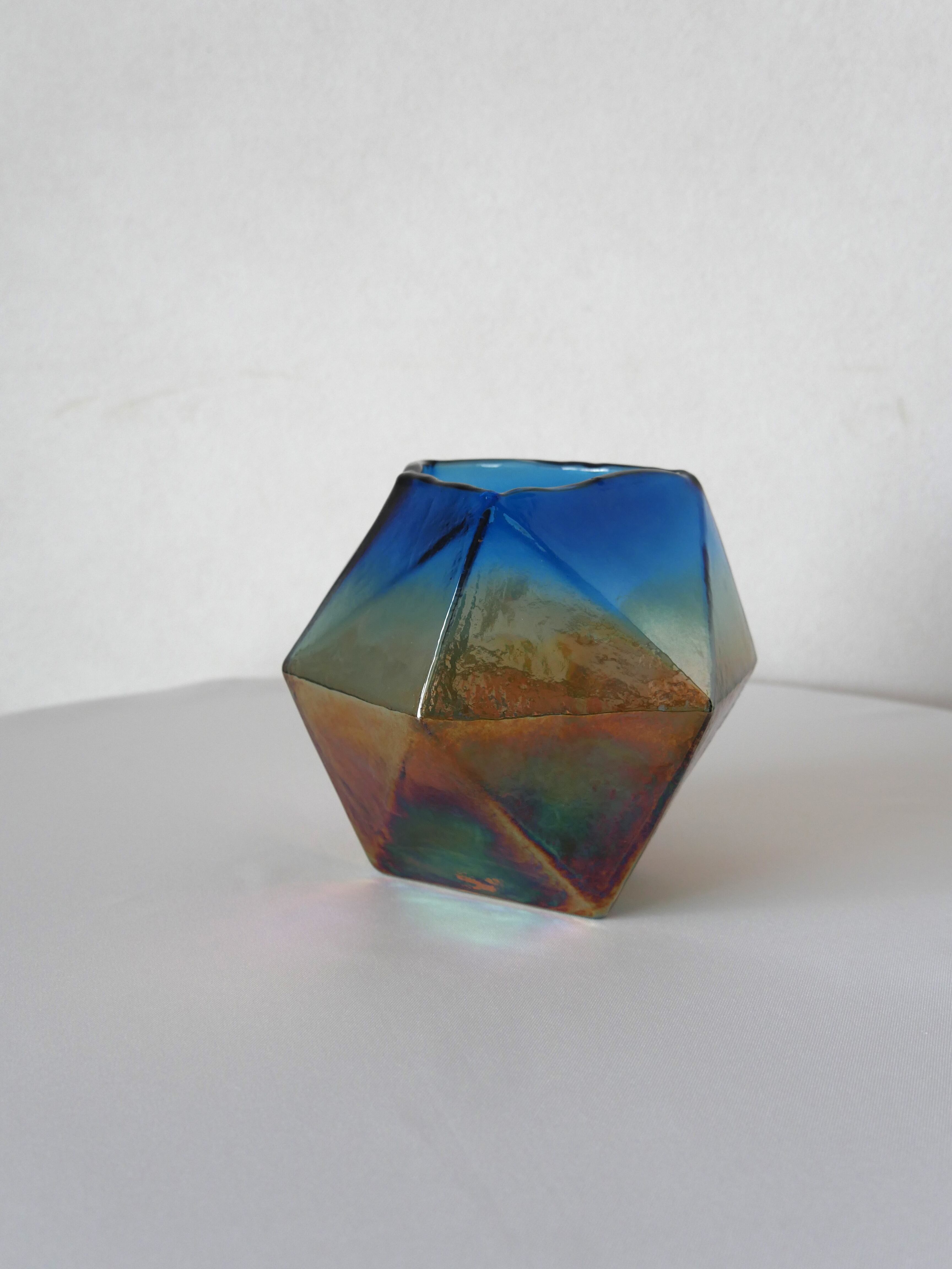 鉱石のような金属のような風味を醸し出すオーロラ色なガラスの花瓶